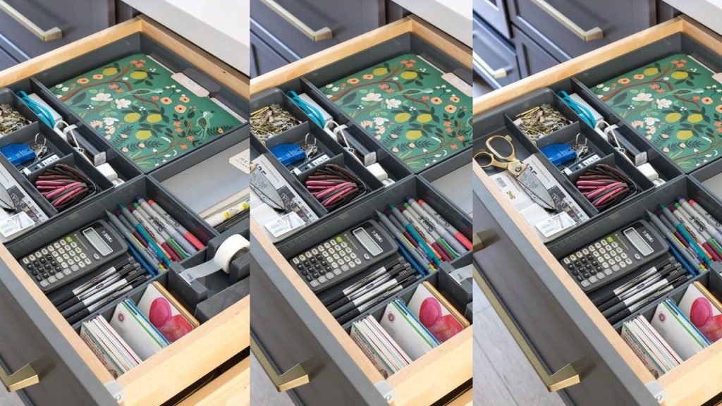 Transparent or light-colored organizers will perfectly fit into minimalist designs. You can purchase several organizers and put them in different places, so you could store certain types of things. For example, a box of notebooks, a box of chargers and wires, a box of pencils and markers, and a box of documents and important papers.